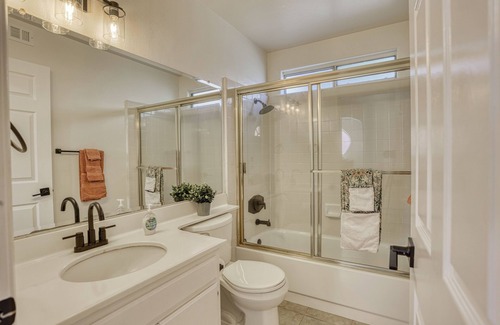 Nestled in peaceful Stevenson Ranch, our home combines suburban serenity with convenient access to shops, parks, and local attractions. Spend leisurely mornings at the Stevenson Ranch Farmers Market, enjoy community vibes at Dr. Rioux Memorial Park, or stroll scenic trails at Pico Canyon just minutes away. For families, Mountasia Fun Center and Painting with a Twist offer playful or creative entertainment. A short drive takes you to Six Flags Magic Mountain or the vibrant shops and dining at Valencia Town Center. Commuting is easy via I 5 or nearby Metrolink stations if you're venturing to LA. This home has a total of 3 bedrooms and 3 full baths and provides comfort and functionality in a quiet, well-located neighborhood. This home sleeps up to 5 guests and is ideal for families or business travelers. Upstairs, you'll find a master bedroom with a queen bed, en-suite bathroom and a walk-in closet. Also upstairs, a second bedroom featuring two twin beds, a full bathroom, and a full size laundry room. Downstairs you'll find a bedroom with a twin bed and a desk, a kitchen, living room and a full bathroom.