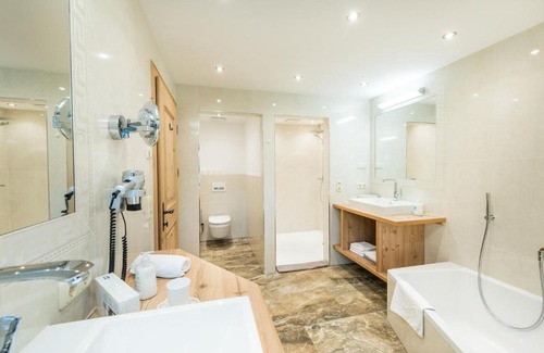 Residenz 111 is located in Holzgau in the Lechtal Vally Nature Reserve in a historic building decorated with traditional "Lüftlmalerei". The Warth/Schröcken Ski Area and the Auenfeldjet Cable Car to Lech/Zürs offer numrous possibilities for skiing. Period furniture and a tiled stove provide for an authentic Alpine atmosphere. You can take advantage of fully equipped kitchens and luxurious bathrooms. Bedrooms are made of Zirben wood. During summer season, you can use buses and cable cars free of charge. A suspended bridge and the Lechweg hiking paths can be found in the immediate vicinity. You can also enjoy cycling tours in the area. A 70-km cross-country skiing track can be found is available in the valley as well.