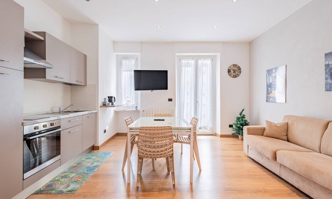 Recently renovated flat located in the centre of Cuneo.Perfect for those who wish to experience the city in total comfort. A stone's throw from the hospital, close to restaurants, cafes, shops and all the main services. Environment is modern, bright and welcoming, ideal for short or long stays. Strategic location for visiting points of interest and enjoying the city's unique atmosphere.Private parking inside the courtyard.Entrance onto living area with full kitchenette, double sofa bed, TV and balcony.Bedroom with double bed and single bed, beautiful real parquet floor, walk-in wardrobe.Bathroom complete with everything, including washing machine, however, positioned on the balcony so as not to occupy space inside the bathroom. . City Tax: € 1,00 per person per night to pay at check-in starting from 1 nights for a maximum of 7 nights