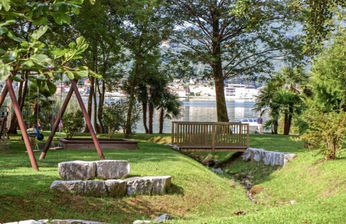 Caslano 8 km from Lugano: Residence "Parcolago (Utoring)", surrounded by trees. In the resort, 1 km from the centre, in a quiet, sunny position, 50 m from the lake, road to cross, located by a road. For shared use: park, lawn for sunbathing. Tennis (1 x clay court) (extra), table tennis. In the house: restaurant, central heating system, washing machine (extra), tumble dryer (for shared use, extra). Motor access to the house. Parking, communal covered parking at the house. Shop 700 m, restaurant 10 m, 15 minute walk to the centre, bus stop "Caslano stazione" 950 m, railway station "Caslano stazione" 950 m, bathing lake "Lago di Lugano" 50 m, lake Lago di Lugano. Golf course (18 hole) 2 km, tennis 500 m, minigolf 1.6 km, walking paths from the house 10 m. Nearby attractions: Mercato di Ponte Tresa (IT), Mercato di Luino (IT), Zoo, Magliaso, Swissminmiatur, Melide, Schokoladenfabrik Alprose, Caslano, Outlet Foxtown, Mendrisio. Well-known lakes can easily be reached: Lago di Como, Lago Maggiore. Hiking paths: Monte di Caslano, Alto Malcantone, Monte Lema - Monte Tamaro. The holiday residence has direct access to the lake and is only separated from the lake by a street. Playground and garden chess. Comfortably and modernly furnished apartments. Depending on the apartment, 1 indoor or outdoor parking space is included in the rental price (note: garage entrance is only 1.80 m high!).
