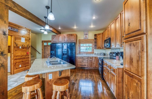 Interior is a unique Tongue-and-Groove, Sheetrock, Rustic Timber and Log Accents