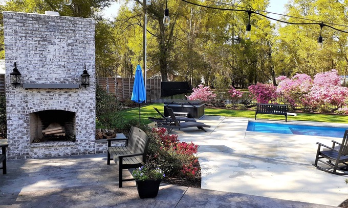 Welcome to the Resort Feel Home, a perfect wedding accommodation nestled in the heart of Foley, Alabama. This spacious residence boasts over 3,250 sq. ft. of indoor comfort, accommodating up to 17 guests across five beautifully appointed bedrooms, making it an ideal setting for your dream wedding celebration. The stunning outdoor space and private saltwater pool create an enchanting backdrop for both your ceremony and reception, ensuring that your special day is unforgettable.