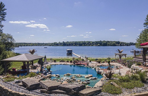 - Log Cabin Mansion fronting Strawberry and Bass Lake with large oversized suites.