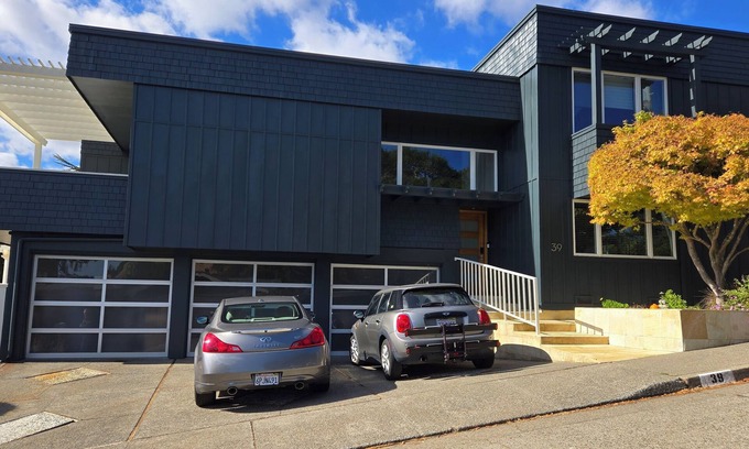 This 3,000 ft home has privacy, spacious living and 180 degree views of two bridges, the San Francisco Bay, and the Marin hills yet you're only 1.5 miles from downtown San Rafael with restaurants, music, art galleries and shops.