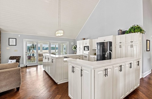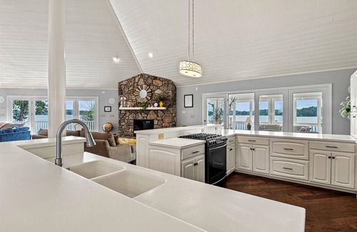 The residence features two expansive decks (one is covered), two full kitchens and eating areas, two huge family/ great rooms, a large loft, and a large pier/dock with a guest 'slip' where you can tie up your boat.