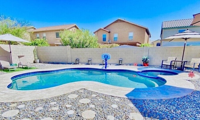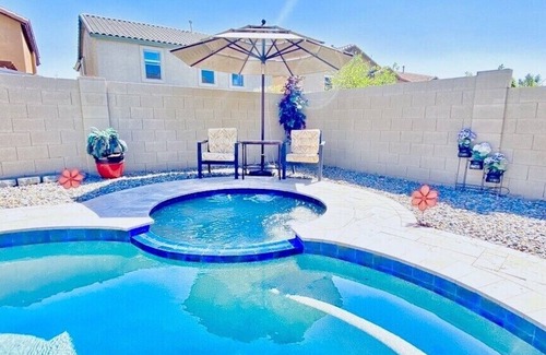 Discover the enchanting Resort Style Living with Heated Pool & Spa, a beautifully spacious vacation home nestled in one of Arizona's finest neighborhoods, ideal for hosting your dream wedding. With its stunning outdoor spaces and luxurious amenities, this property sets the stage for unforgettable celebrations, making it the perfect accommodation choice for you and your guests. Imagine exchanging vows under the sun by the sparkling pool, followed by an intimate reception surrounded by lush greenery and elegant lighting.