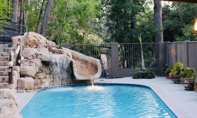 Resort style luxury home with pool (not heated) and water slide is located in Fullerton. Resort style luxury home with pool (not heated) and water slide provides accommodation, featuring Security/Safety, Bedding/Linens, Child Friendly, among other amenities. This House features Security/Safety, Bedding/Linens, Child Friendly, to make your stay a comfortable one.