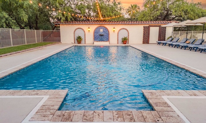 Solana Spanish Villas is a private estate with 6 houses on a stunning 5.7 acre oasis unlike any vacation rental in Tucson. Unwind in the resort-style heated pool, enjoy a game of pickleball on our private court, or simply bask in the serene surroundings. Our villas cater to families, biking or golf groups, corporate or family retreats, winter visitors, or anyone seeking the ideal vacation home. Discover the perfect place to relish Tucson's beautiful year-round weather. Professionally managed to deliver the comforts of home plus the amenities of a mini-resort. Located in the Tanque Verde valley with stunning views of the Catalina Mountains this private villa offers historic Spanish charm with modern comfort nestled within a mature Mesquite tree bosque, 150 year old Eucalyptus trees, green grass and desert wildlife.