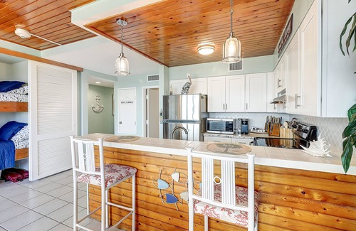 MP102 has a fully stocked kitchen and amenities to get your vacation started off right. The kitchen has been completely remodeled and features full size stainless steel appliances and custom counters and cabinets. There is a Keurig coffee maker, so make sure to bring your favorite K-cup pods. There is dining for six with two additional bar stools at the kitchen snack bar.