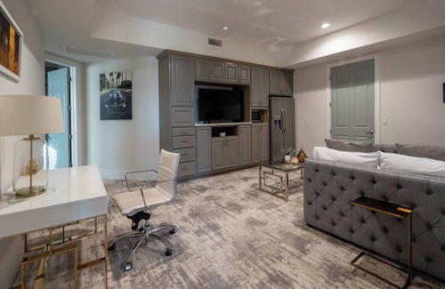 Inside, enjoy chef-inspired open-concept kitchens, expansive living and dining areas, three indoor fireplaces, and designer furnishings with premium bedding throughout. Every bedroom features an en-suite bathroom, and two suites include private sitting areas that can double as extra sleeping space—perfect for families with kids or guests seeking added privacy. Multiple dedicated workstations make this home remote-work friendly.