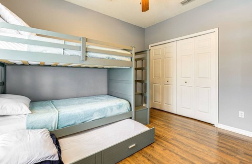 Welcome to our home that boasts a oversized pool and Gratto hot tub. This Resort style home in Port St. Lucie is perfect for your escape to relaxation. Being only 3 miles to PGA Championship Golf Courses, 15 min. to blue water beaches , and Great 5* dining experiences, this home offers all the tranquility of being on vacation while still being close to all the action. There is tons of room to have a family reunion or simply enjoy paradise away from the hustle and bustle. This 6-bedroom resort in Port St. Lucie is perfect for your escape to relaxation. Each room offers a unique sleeping experience, from a king bed to a cozy bunk bed with 3 twin beds . With 3.5 bathrooms equipped with hair dryers, your group will have plenty of space to freshen up. The living room even has an extra queen bed for added comfort. Experience what Port St. Lucie has to offer with a stay at our enchanting resort.