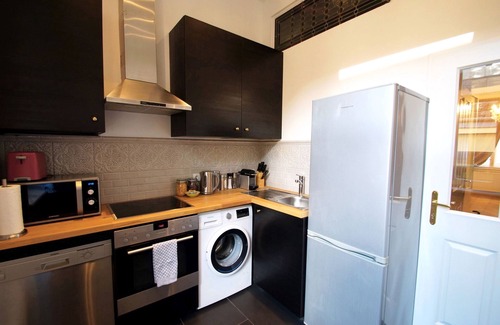 You will have the whole apartment just for you! This apartment is situated in a house builded in 1896. It is newly renovated but still has the original charm in the year one. Original stairway, high ceilings, old parquet floors, traditional double doors, and at the same time all the comforts of 21st century living: Spacious bathroom, modern kitchen with all appliances (oven, microwave, fridge, dishwasher…), SMART TV (over 50 TV channels including English news channels), DVD´s & DVD-Player, wireless internet (WIFI), washing machine, hair-dryer, iron, -board, vacuum cleaner...