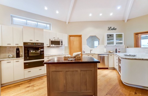 Relax with the whole family at this peaceful lakefront home. Fish from the dock or bring your own boat with free dock space available. Next to park with playground and short walking trail.