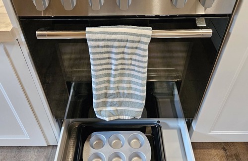 Nestled among trees, our cozy cottage invites you to unwind in a delightful haven. The one-bedroom retreat exudes warmth and comfort, featuring a cozy queen bed. The bedroom is thoughtfully equipped with a wardrobe, alarm clock and night stands with USB plugs. The open kitchen and living room space create an inviting atmosphere for gatherings and shared moments. For additional sleeping space, the sofa converts to a queen size bed. Tastefully designed, it's a seamless blend of style and functionality. Adjacent, there’s a laundry room, complete with a half bath for added convenience. Whether you're seeking a romantic getaway or a peaceful solo retreat, this charming cottage is your haven of relaxation.