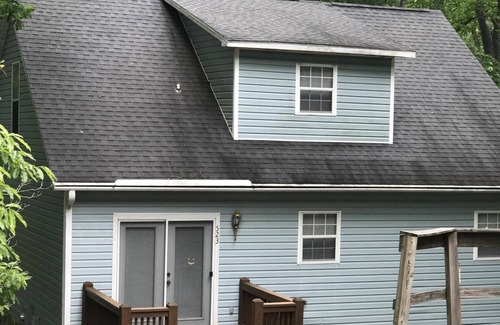 Come REST and RELAX at the house affectionately known as the “Little Blue House”. I am more spacious than I look. My back deck will make you feel like you are in a tree house, where you will hear the creek flowing in the background. Outdoor enthusiasts will love the close by trails for long or short adventures, golf, antique shopping, bluegrass music, breweries and more! I give special discounts to law enforcement, fire personnel and school teachers. Three floors: Master with private bath on main level, 2 bedrooms and bath upstairs, 1 bedroom, bunk and bathroom on basement level. Sleeps 10 to 13. 2 king beds, 3 queen beds, 3 single beds and a futon. 3 1/2 baths. Wifi, cable, central air, stocked kitchen, and outdoor charcoal grill. I am sorry but the gas fire place has been removed! NO YOUTH GROUPS! Sorry have had issues! Lastly PARK IN PARKING SPOTS! DO NOT PULL DOWN CLOSE TO HOUSE! Thanks