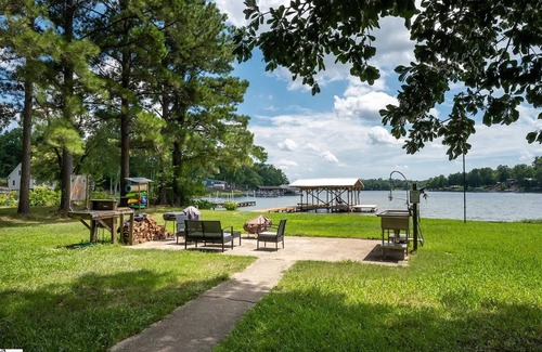 Enjoy lake views from the rocking chair porch. Right on the lake, this house offers plenty of privacy, spectacular views of Lake Greenwood, and a private boat dock and short pier. Bring your own boat or water toys, launch sites are only a few miles away. One of them is called Riverfork Boat Ramp.