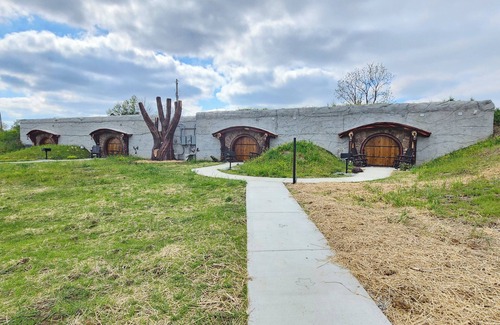 Restin' Holes was created with everyone in mind. Book your stay today and discover the perfect vacation & make unforgettable memories.Restin' Holes is a Kentucky village on the Bourbon Trail. This Unit (B) is 1 of the 4 cozy, underground units on the property. This 572 sqft getaway features a king bed, Roku tvs, WiFi, fireplace, kitchenette, dining area, outdoor grill, desk, queen bunks room, washer/dryer, and walk-in shower bathroom. Many shared amenities including: swimspa hot tub, firepit/swings, sauna, gym, waterfall, painted murals, garden, fresh eggs, playground, & outdoor movies.