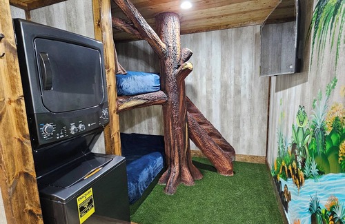 Restin' Holes Ky Bourbon Trail C -Sauna-HotTub-Gym-Playground-Waterfall-Themed is located in Willisburg. Restin' Holes Ky Bourbon Trail C -Sauna-HotTub-Gym-Playground-Waterfall-Themed provides accommodation, featuring TV, Security/Safety, Bedding/Linens, among other amenities. This Cottage features TV, Security/Safety, Bedding/Linens, to make your stay a comfortable one.