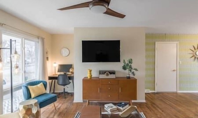 Step into a time capsule of vintage charm, where every detail evokes nostalgia and warmth. From the inviting covered porch to the master suite adorned with a luxurious king bed and floating TV, immerse yourself in an ambiance of relaxation and tranquility. The vibrant hues, smooth lines, and hardwood floors of the 1950s era envelop you, creating a space that feels like home from the moment you arrive.