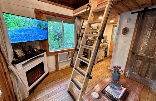 >>> The queen bed is located in a loft upstairs, please be mindful of this if you struggle with climbing/mobility**
