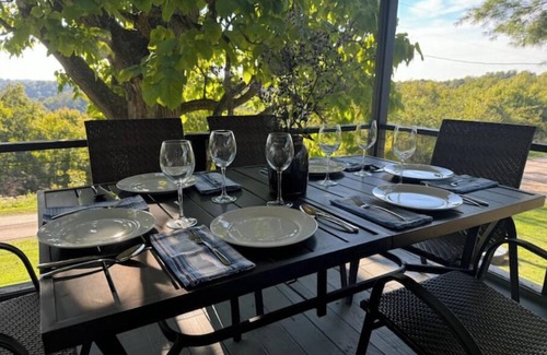 Relax at this peaceful, recently restored 1880's farmhouse located in the hills of southeast Ohio. This 2 bedroom, 1 bath retreat is great getaway for a couple or for the whole family. Situated on a ridge, this 25-acre property borders the Wayne National Forest. You’ll enjoy the views of the surrounding valleys from the large screened-in porch and from the hilltop fire pit area. Play disc golf, corn hole, or softball. Go for a hike, read a book, or simply enjoy the peace and quiet.