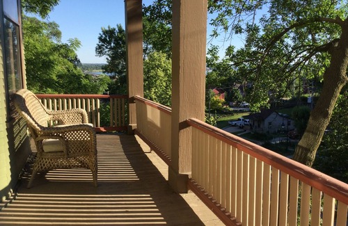 Historic apartment, meticulously restored, awaits you at the end of your journey. First of 4 townhouses being restored in this 1906 4 plex building. Sitting on a private bluff, it offers stunning views of the Mississippi River from its rooms and front porch. Furnished with comfortable antique and vintage-style furniture complementing its construction date and your stay in Davenport’s Hamburg Historic District. Fully furnished full kitchen, separate dining and living rooms with a gas log fireplace. Second floor master bedroom with ¾ bathroom with extra-large shower. Second floor central full bath plus washer and dryer. Downstairs 1/2 bath powder room. Private parking lot behind the townhouse. Basement workshop, just let me know if you need to borrow some tools. Back yard with picnic table, seating, charcoal grill and supplies. Friendly, helpful owners live just one block away.