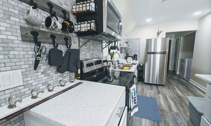Welcome to our beautifully renovated farmhouse that has some country feel, while still being a walking distance to the vibrant downtown of Flushing Michigan. This upstairs 3 bedroom 2 bath unit is luxuriously renovated and has all the amenities you may need for your stay. Guests have an indoor garage space as well and full access to the half acre backyard. Neighboring chickens occasionally graze in the yard, and the train rolls through every so often, a serene and peaceful setting you may also enjoy on the second level covered porch with your morning coffee. We look forward to hosting you!