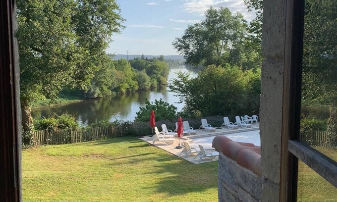 Restored Farmhouse with stunning river views, private pool and games room | House in Pessac-sur-Dordogne