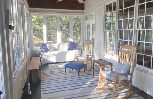 Secluded riverfront home is perfect for a quiet getaway. Great for fishing, boating, relaxing by the fire pit, grilling, playing shuffleboard or lounging on the beautiful sleeping porch with river view.