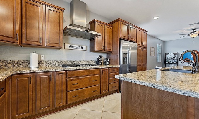 This spacious 4-bedroom, 2-bathroom property features a gourmet kitchen designed for entertaining, an open floor plan, and beautifully appointed living areas that will make your stay extraordinary. The lush backyard is the highlight, offering a crystal-clear private pool complete with a waterfall, a cozy outdoor seating area with a fire pit, and BBQ grill—ideal for hosting intimate wedding gatherings or celebrating pre-wedding events. Enjoy luxurious amenities like high-speed Wi-Fi, a 70" Smart TV, and ample parking space to ensure you and your guests have everything you need for a memorable occasion.