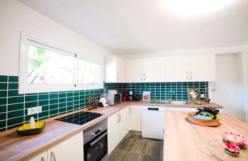 As the place is still renovating, the interiors will be bright and attractive. The bedrooms will have a bathroom and large windows. A top modern chic kitchen is available to our guests. In the winter garden, you can relax, watch TV and look at the beautiful surroundings. There is heating in the whole house for rare but occasionally cool days, we produce water and electricity exclusively with solar energy.