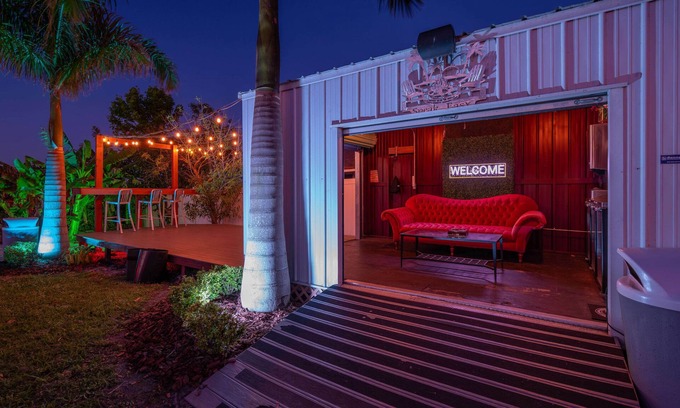 A hidden backyard speakeasy inside a converted shed — a fun escape for grown-ups