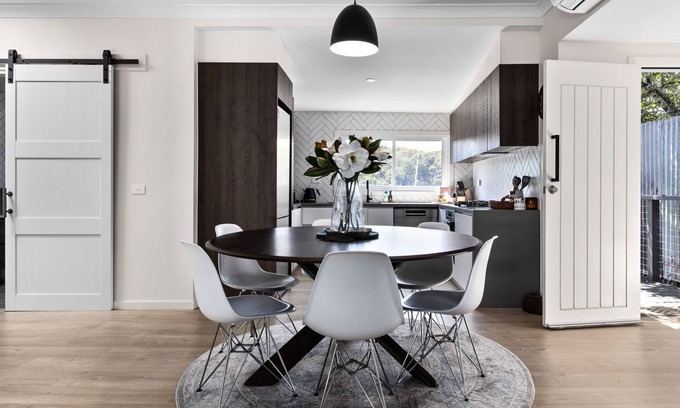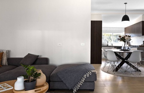 Perfectly positioned in Hepburn Springs, just a short stroll from the Hepburn Bathhouse, cafés, and restaurants, Retreat on Church offers a peaceful yet well-connected escape. Designed to cater to families, friends, and groups, this thoughtfully curated retreat is made up of two stylish, self-contained properties within one dwelling—Roxy on Church (3 bedrooms, 3 bathrooms) and Fox on Church (2 bedrooms, 2 bathrooms). Together, they offer flexibility and space, whether you're traveling as a couple, a family, or a larger group.