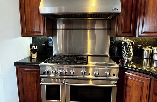 Downstairs, there is a large game room with ping-pong, air hockey, and a foosball table. Also, six twin beds, making it a family favorite area. Alternatively, a suite downstairs features a king bed and a second kitchen, where the BBQ is located. Open the garage doors to bring the outdoors inside to you! Two kids' kayaks are available, and kids must wear life jackets, provided when going out on the water. The home does have a high chair and Pack 'n Play for the very young ones. It is located near the train tracks, so hopefully, you don't mind them rocking you to sleep. Please ensure your children's safety throughout your stay.