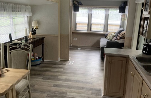 Newly renovated 38 foot, with 3 slides park model home is exceptionally clean.
