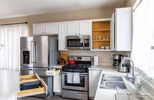 Enjoy cooking in this lovely fully kitchen and dine in style with your friends & family, This home comes with included dishware, pots and pans, and cooking utensils so that guests can cook all their meals during your trip if needed. Or surprise your friends with your cooking skills.