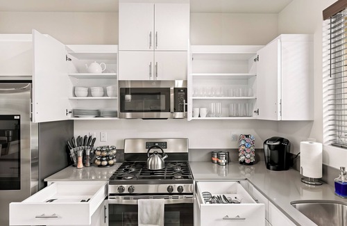 ✔ Fully stocked kitchen w/ modern appliances (including gas range & dishwasher)