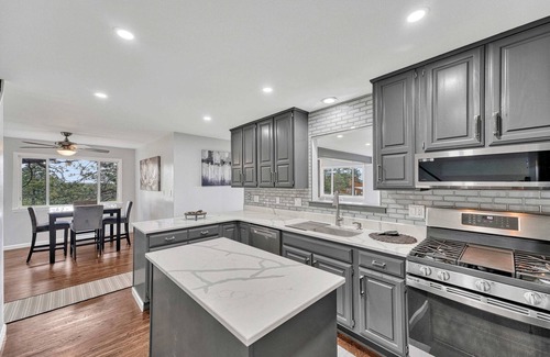 Updated Kitchen: Cook up a feast in the updated kitchen, complete with a gas stove, microwave, Keurig coffee maker, and stunning quartz countertops.