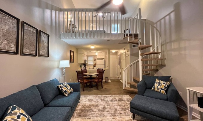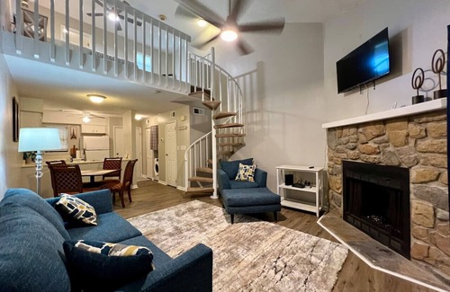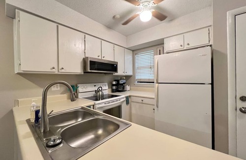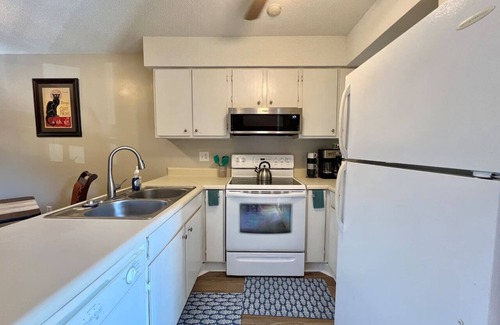 Escape to a cozy one-bedroom, 1.5-bathroom within a serene condo community. Ideal for a peaceful getaway, this charming property features a private balcony that overlooks a picturesque wooded stream. Plenty of outdoor amenities to enjoy, including a 1.3-mile paved walking trail that winds around a beautiful pond, perfect for a morning stroll. A shaded playground provides a fun and safe area for kids to play. Book your stay today and discover the tranquility of this woodland haven!