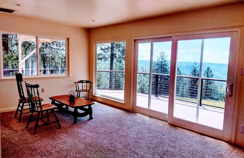 Get away with sweeping views of pine and valley from the comfort of your living room and bedrooms. Enjoy a newly re-modeled modern interior in a cabin atmosphere. Bear Family Ranch is only a 2 hour drive from the Bay Area but feels a world away. And oh, the stars at night! You must see it to believe it.