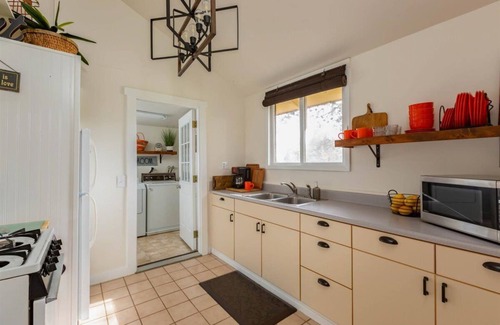 Nestled in an 12-acre oak-studded hillside, this charming 1940's one-bedroom country cottage comes with a private bedroom, futon couch in the living room, Wi-fi, TV, full bathroom and a laundry room with washer/dryer. The full kitchen includes a small gas stove, microwave, refrigerator, coffee maker, pans and utensils. There is a propane grill and patio seating if you choose to relax at home and eat in. There are plenty of spices to choose from! This cottage comes with all linens (washed with Tide Free detergent). This is a thirty day or more stay, please inquire with your requested dates and we will generate a great rate for you!