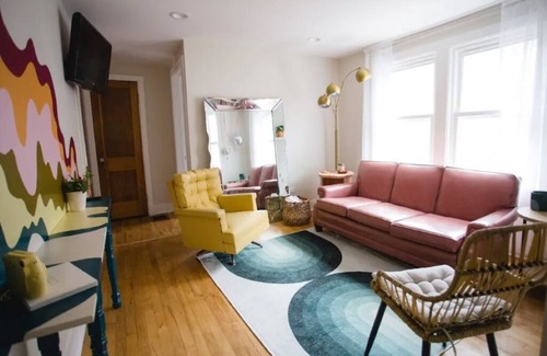 A sunny second story apartment filled with color and vintage pieces to bring a sense of fun and wonder to your Chicago visit. We hope for your stay to be comfortable, safe, and fun while in your separate top unit apartment we affectionately call the Retro Roost.