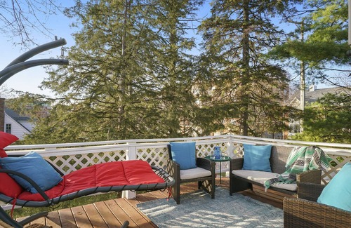 - Retro Apt-Private Deck-King Bed-Downtown-Huge Sofa-Free Parking-Walk to Train