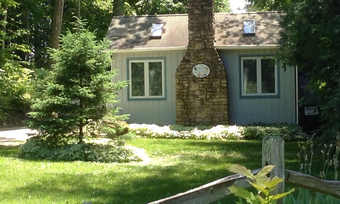 Lille Cottage is nestled among the woods on the edge of Fish Creek and Ephraim. It is conveniently situated across from Peninsula State Park hiking trails, off-road bike trails, and cross-country ski trails; 1/4 mile to the State Park Golf Course. Lille Cottage was remodeled and updated (May 2017) to reflect the "retro" theme of this 1950's built "lille" (tiny) cottage; Bathroom renovated in (Mar. 2023). Savor the quiet sounds of the woods and the crackling of firewood burning over the open outdoor fire-pit ~ roast s'mores each evening to end the perfect day in Door County!