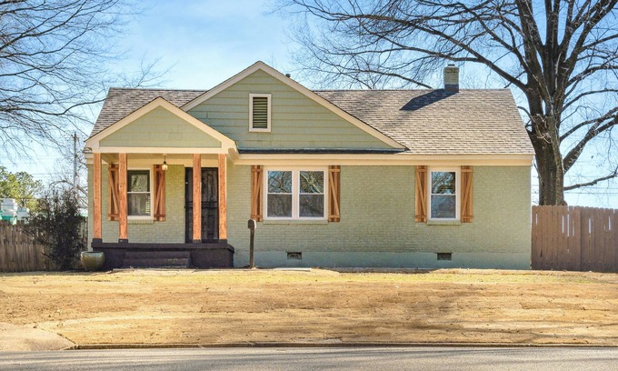 Relax in the heart of East Memphis in our cozy 2 bedroom cottage. The home has an updated kitchen and huge patio for you to enjoy, plus you're just a hop and skip from an endless number of shops, restaurants, and grocers. This is a small space of 1100sf designed for a savvy digital nomad or wanderlusting couple passing through. You'll enjoy two stylishly decorated bedrooms, a cozy office setup, and a fully equipped kitchen plus an expansive fenced-in backyard with a deck absolutely showered with golden rays of Memphis sun.