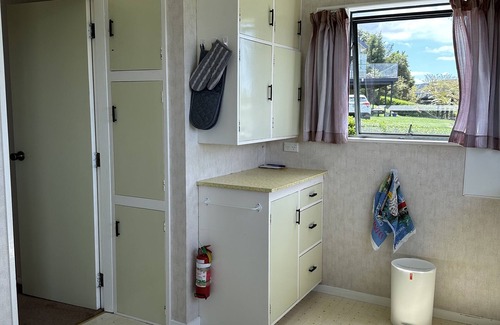 Bach is well appointed with a well equipped kitchen. The kitchen, living and dining areas are open-plan and inc a dining table with chairs. Lovely views of Lake Taupo can be seen from the kitchen, dining area, lounge and deck. Tea, coffee and sugar is provided plus a small milk to start you off. Some pantry items are provided free for your convenience as are some cleaning products, toilet paper, handy towels, glad wrap etc.