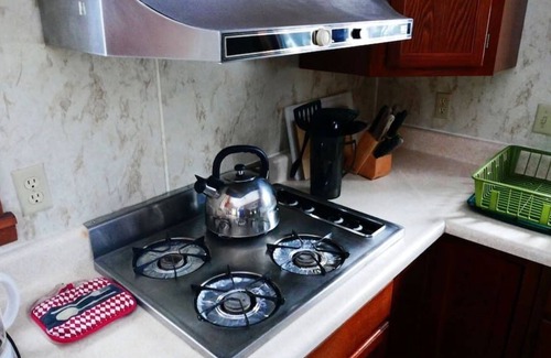 Each of the bedrooms has air conditioning in the summertime and heating in the chillier times of year. The indoor fireplace is off limits from May-September, but in the winter months it is available and wood is provided.