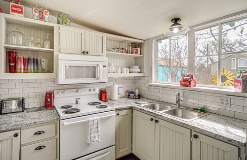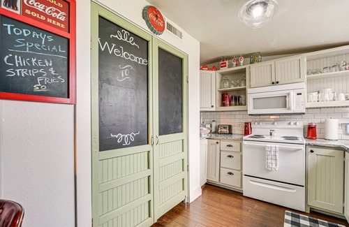 Live out your retro fantasy at this delightful 2-bedroom, 2-bath vacation rental in Llano! Built in the 1930s, this home provides a unique experience complete with an eclectic living space, a 50s-inspired dining room, themed bedrooms, and a shared backyard. When you’re not exploring Main Street, toss some burgers on the gas grill or gather around the fire pit for s’mores. If privacy is what you’re after, you’ll love recounting the day’s memories on the screened porch!