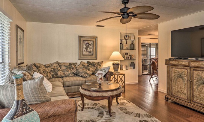 Book your coastal Florida retreat to this charming 2-bedroom, 2-bath vacation rental house just over 7 miles from downtown Vero Beach. Set in a quiet senior community, this 1,587-square-foot residence boasts a tastefully furnished vintage interior, a Florida Room, and access to all of the Heritage Plantation community amenities like a pool and fitness center. Shop at the Vero Beach Outlets, soak up the sun at South Beach Park, or simply relax poolside at this remote Vero Beach home base!