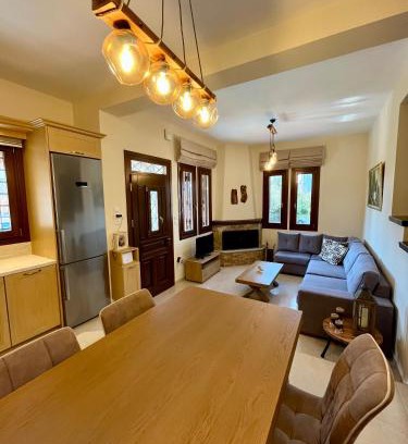 Offering a garden, Reven Resort provides accommodations in Kato Gatzea. This property offers access to a terrace, free private parking, and free Wifi. The accommodation offers a shared kitchen and bicycle parking for guests. The air-conditioned vacation home consists of 2 bedrooms, a living room, a fully equipped kitchen with a dishwasher and a coffee machine, and 1 bathroom with a shower and a hair dryer. Towels and bed linen are offered in the vacation home. There's also a seating area and a fireplace. During warmer months, you can make use of the barbecue facilities and eat on the private patio. The vacation home has a picnic area where you can spend the day outdoors. Kato Gatzea Beach is a 2-minute walk from the vacation home, while Panthessaliko Stadium is 13 miles from the property. Nea Anchialos National Airport is 41 miles away.
